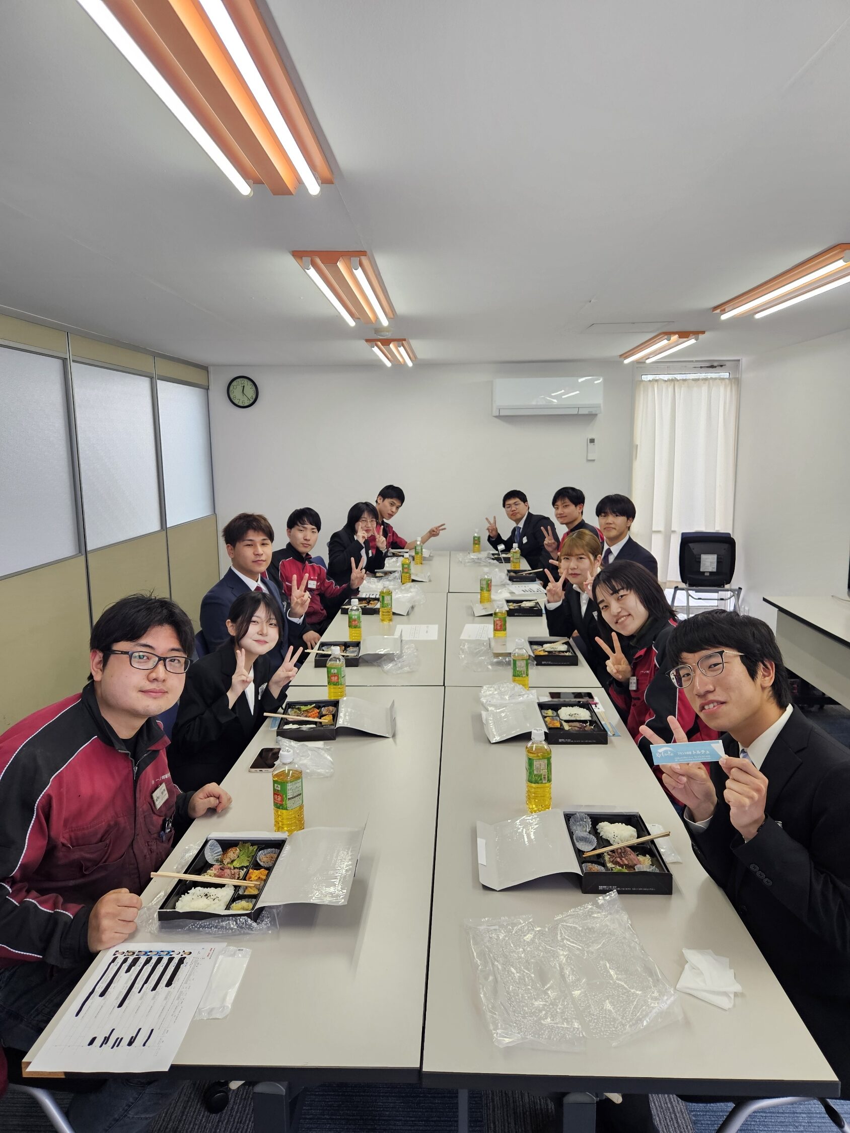 入社式のあとは、入社2年目、3年目の先輩社員との昼食コンパを行いました。